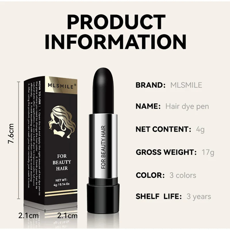 Instant One-time Hair Dye Pen To Cover White Hair, Lipstick Style Hair Dye, Black Temporary Hair Dye Hair Color Modify Cream 4g