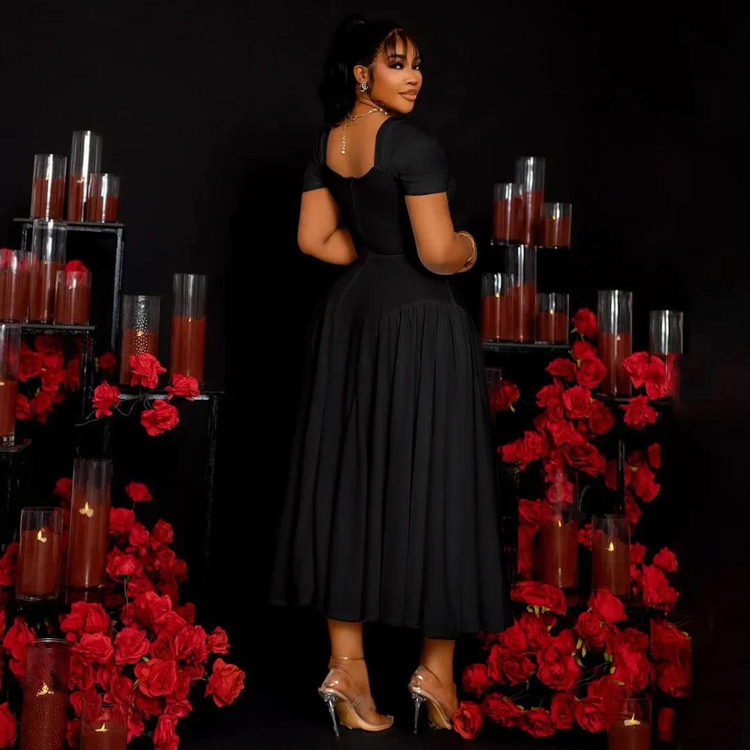 Plus Size Fashionable Elegant Long Strapless plus Size Dress for Black Women N8072 Cross-Border Large Size Clothing Sexy Wais...