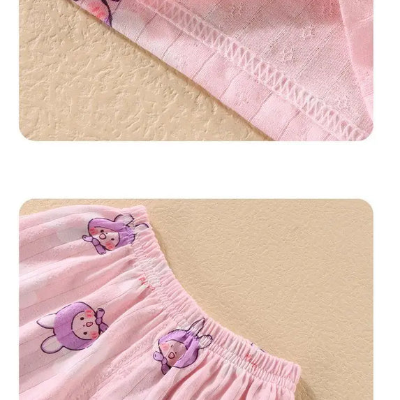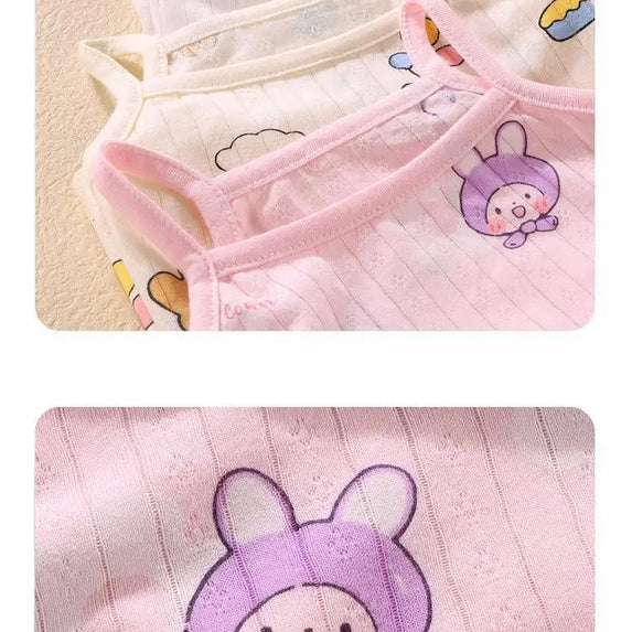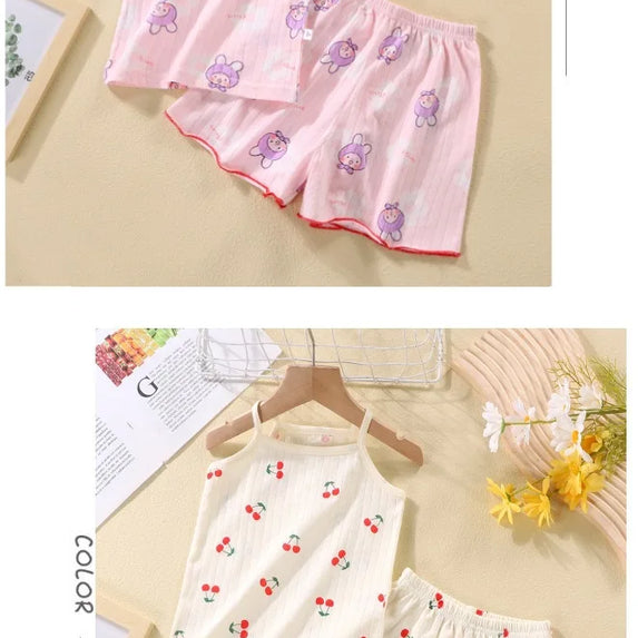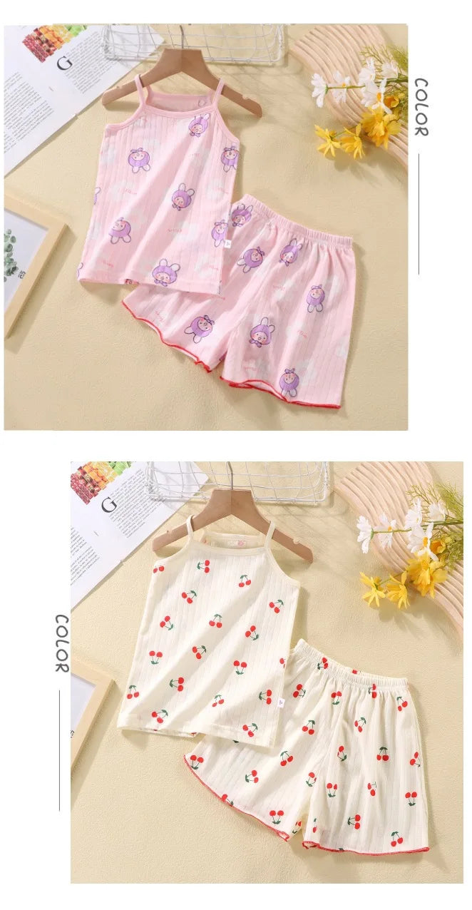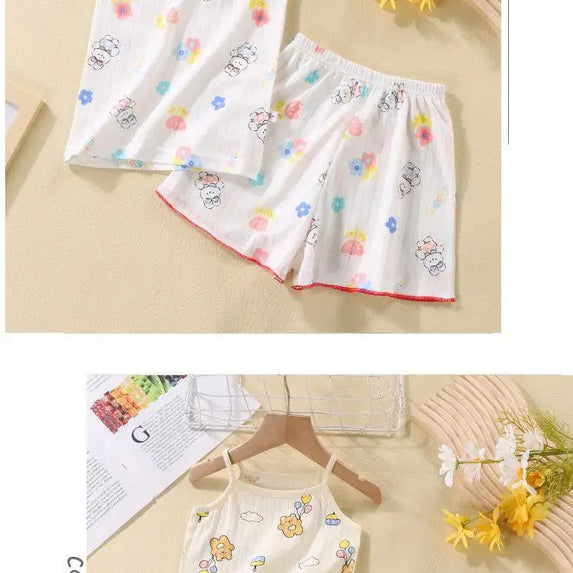 Sling+Shorts Suit Summer Girl's All Cotton Pajamas Infantil Cartoon Printed Sleeveless Home Clothes Fashion Cute Vest Two Piece