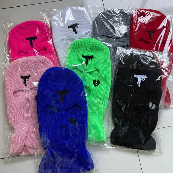 3Holes Winter Warm Unisex Balaclava Mask Hat Embroidery Full Face Mask Knitted Cycling Ski Snowboard Hat Cap Hip Hop Beanie Gift