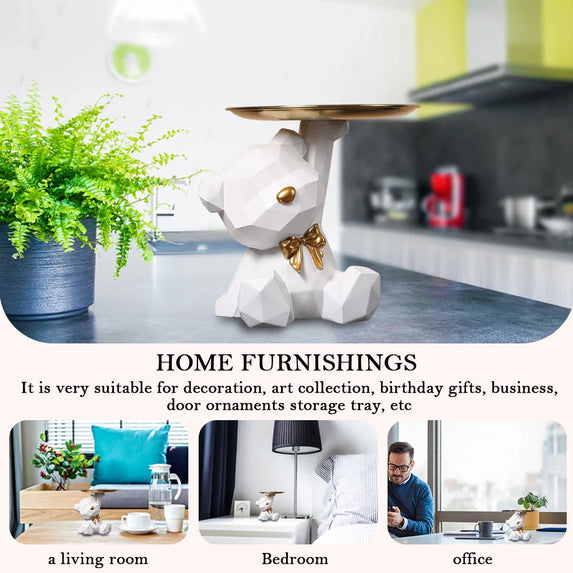 Geometric Bear Key Holder Figurine Entrance Crafts Resin Desk Decoration Candy Sundries Household Supplies for Home Living Room