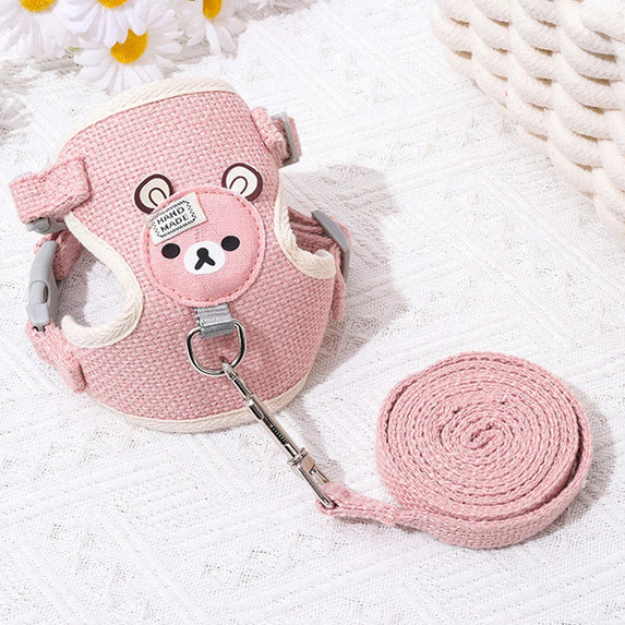 Adjustable Bear Decoration Dog Vest Chest Harness Breathable Pet Cat Harness Leash Set Teddy Small Dog Walking Rope