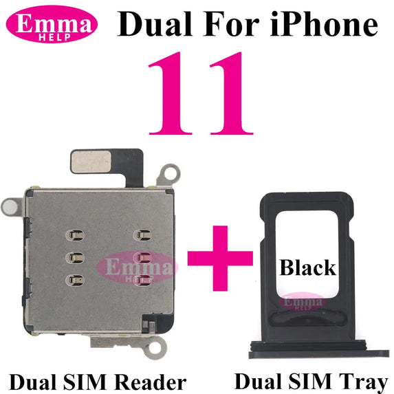EmmaHelp 1set Dual Sim Card Reader Connector Flex Cable + Tray Slot Holder Adapter for iPhone 11 12 13 14 15 Pro Max XR XSMax