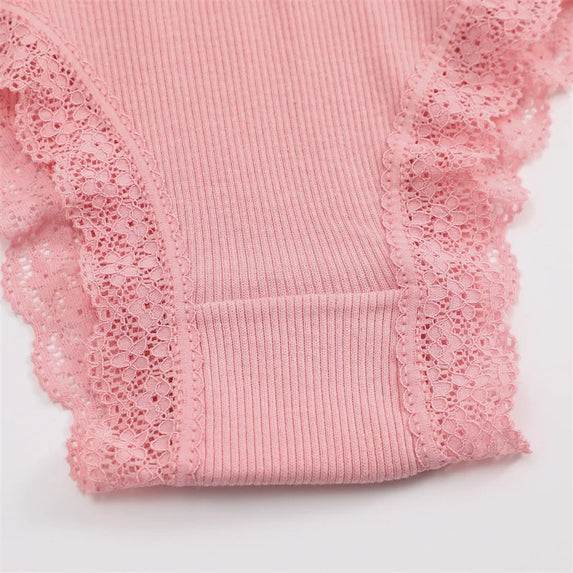 3PCS/Set Women Cotton Panties Sexy Low Rise Lace Brazilian Panties Hollow Out Soft Breathable Lingerie Female Bow Underwear S-XL