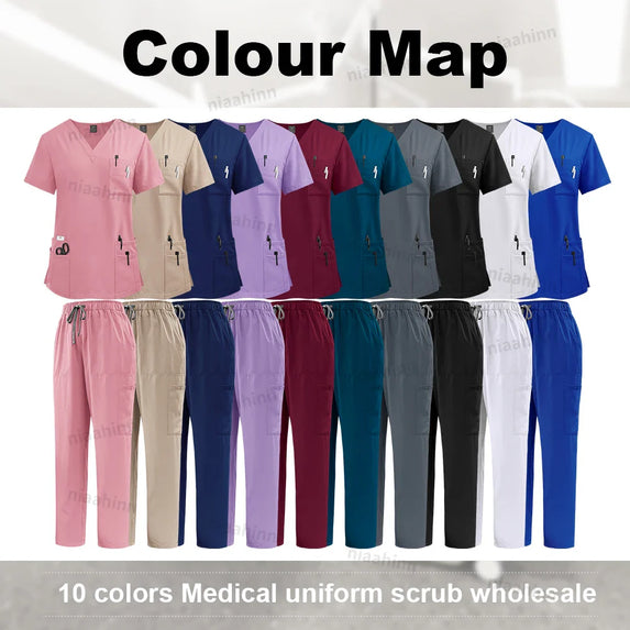 High Quality Medical Clothing for Women Uniform Nurse Lab Coat Unisex Wholesale Tops and Pants Suits Nursing Scrubs Uniforms Set