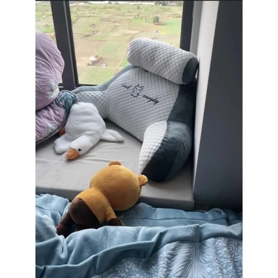 1pc Adjustable Reading Pillow - Ergonomic Back Support Cushion for Bed/Sofa/Floor, Gray Quilted Breathable Design