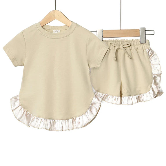 2025 Kids Girls Summer Outfits Solid Cotton T-shirt+Shorts Toddler Teenager Lounge Suit For 9M-7T Casual Girl Breathable Clothes
