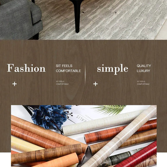45cm Big Roll Home Decoration Background Wall Desk Cabinet Wallpaper Wood Stripes Waterproof PVC Self-adhesive Wall Stickers