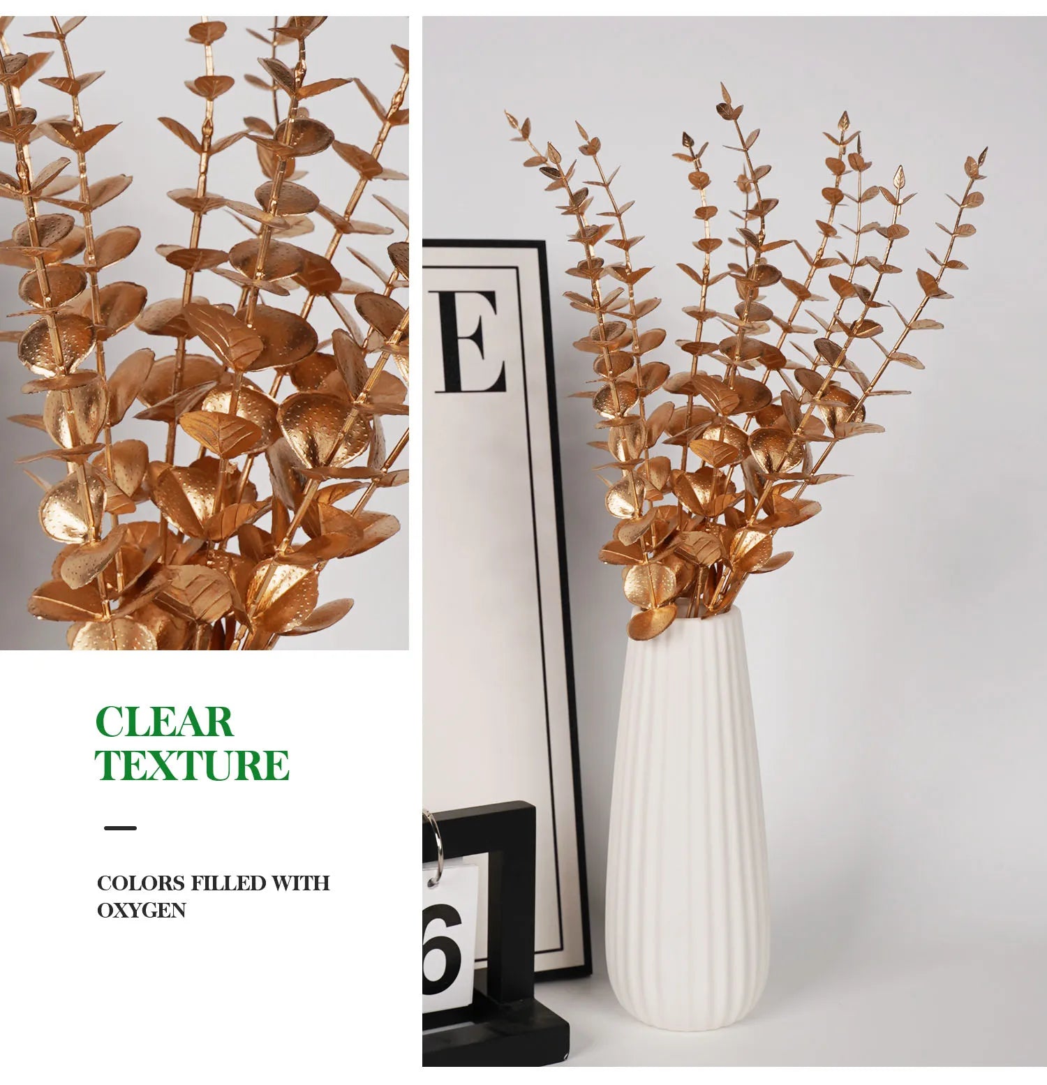 5pcs/Lot Artificial Gold Eucalyptus Branch Stem Artificial Plants for Wedding Flower Arrangement Greenery Home Decoration