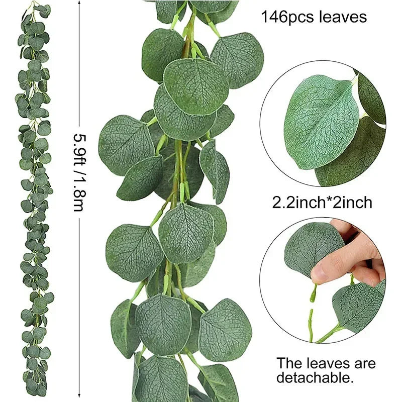 6Ft Artificial Eucalyptus Garland Plant Decoration Hanging Greenery Leaves Fake Plants Vine for Wedding Arch Garden Home Decor