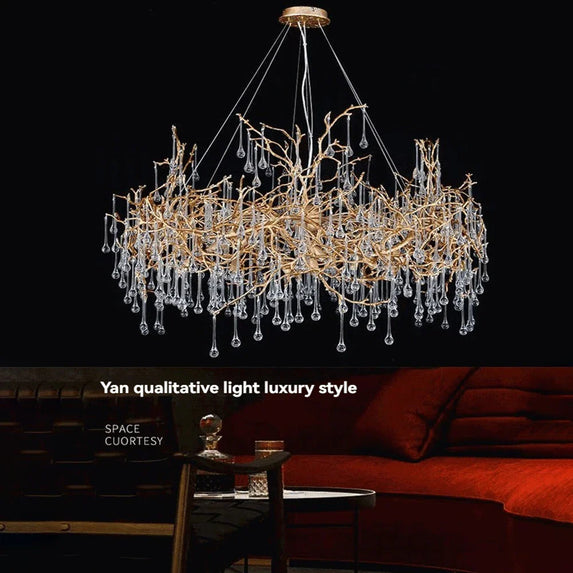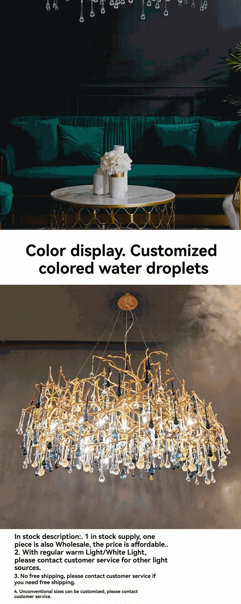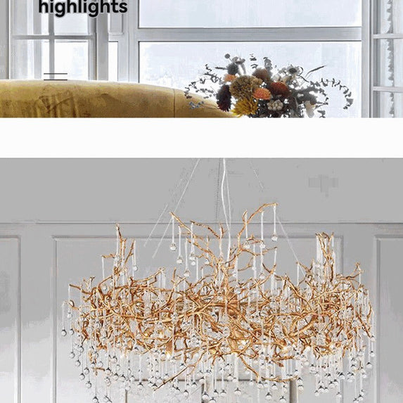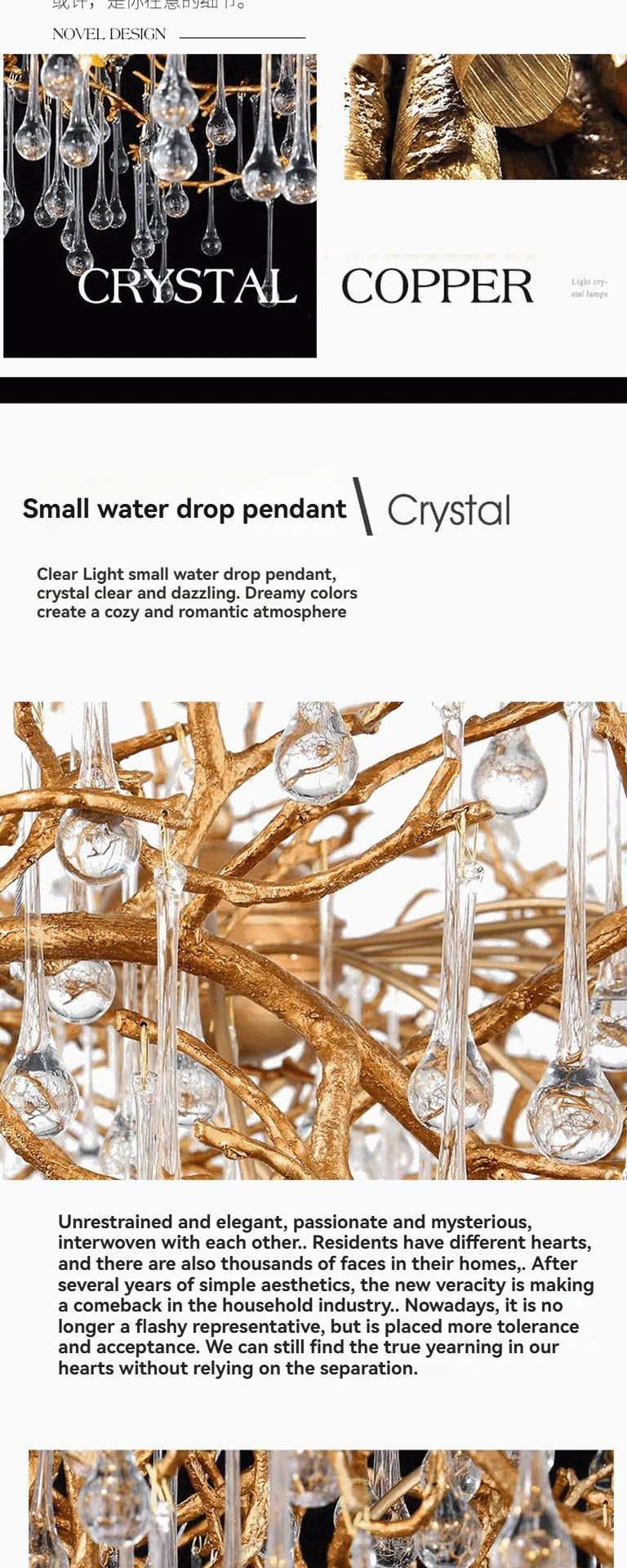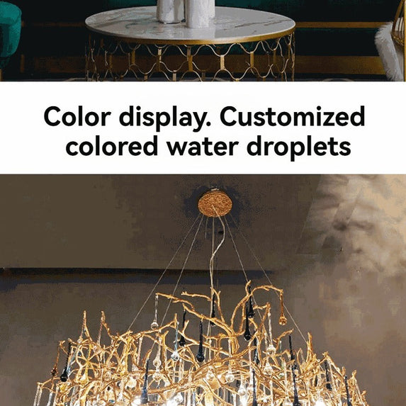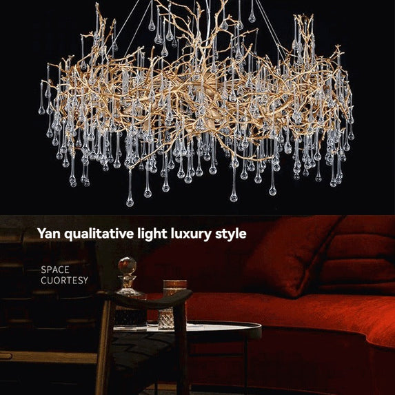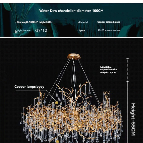Copper Crystal Chandeliers Luxury Living Room Pendant Light French Villa Atmospheric Pendant Light Restaurant Light Hotel
