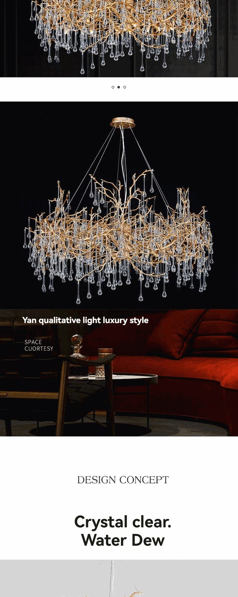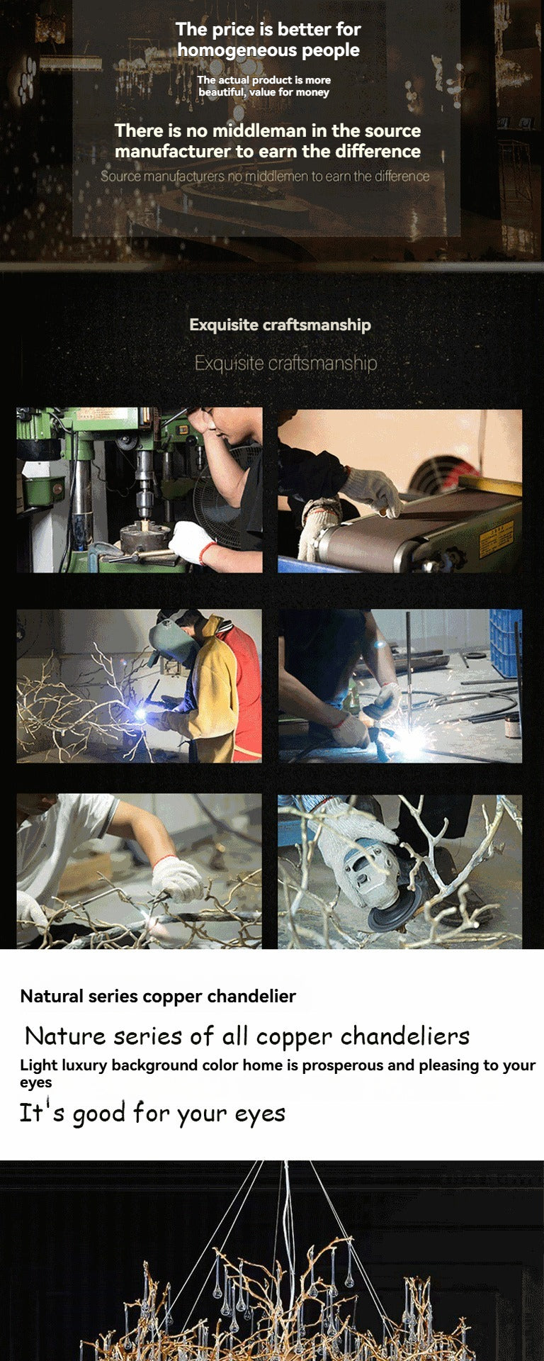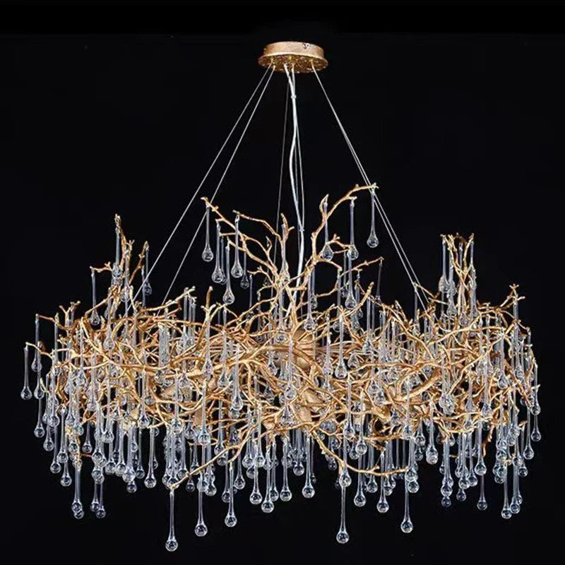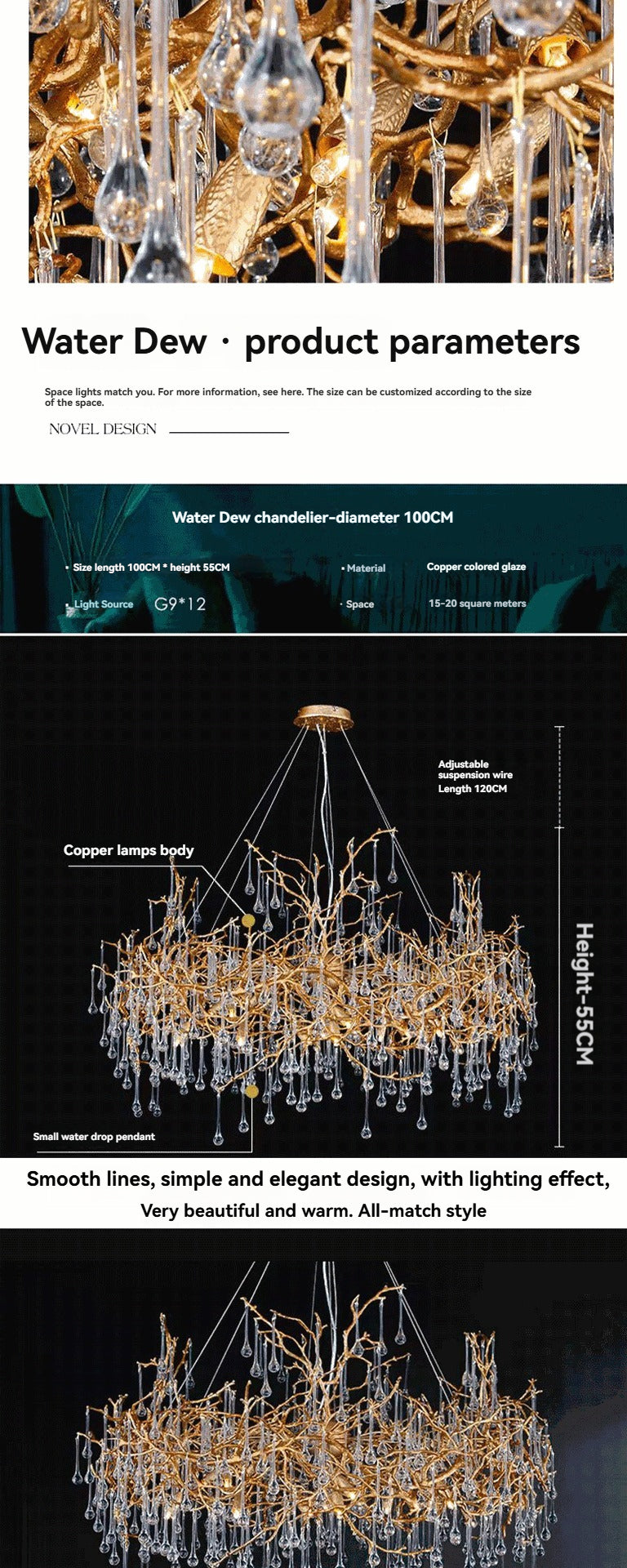 Copper Crystal Chandeliers Luxury Living Room Pendant Light French Villa Atmospheric Pendant Light Restaurant Light Hotel