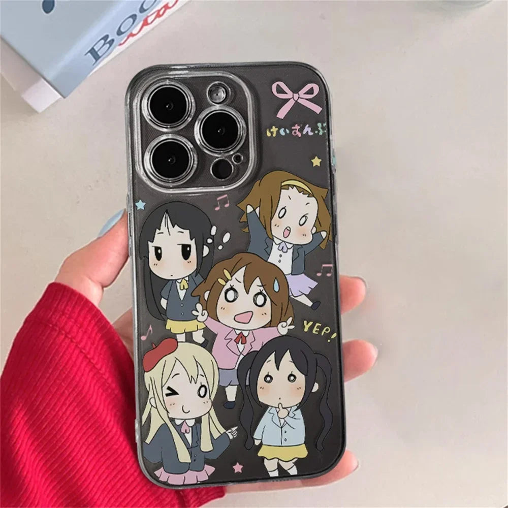 Japanese Anime K-ON! Clear Case for iPhone 15 16 Plus 12 13 mini 11 14 Pro Max XR Ultra Thin Anti-Scratch Soft Silicone Cover