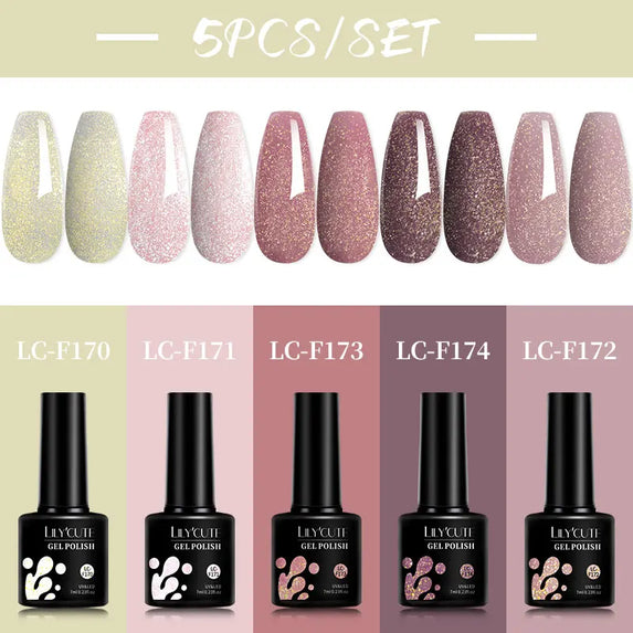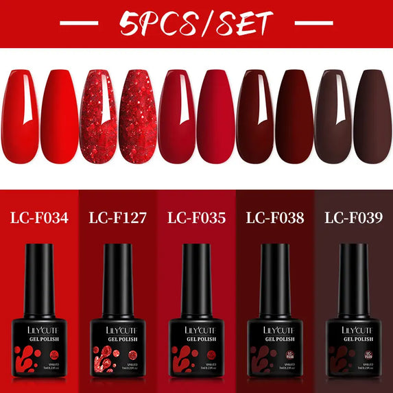 LILYCUTE 5Pcs/Set 7ML Red Brown Nail Gel DIY Nail Art Semi Permanent UV Gel Polish Long Lasting Design Manicure Kit Supplies