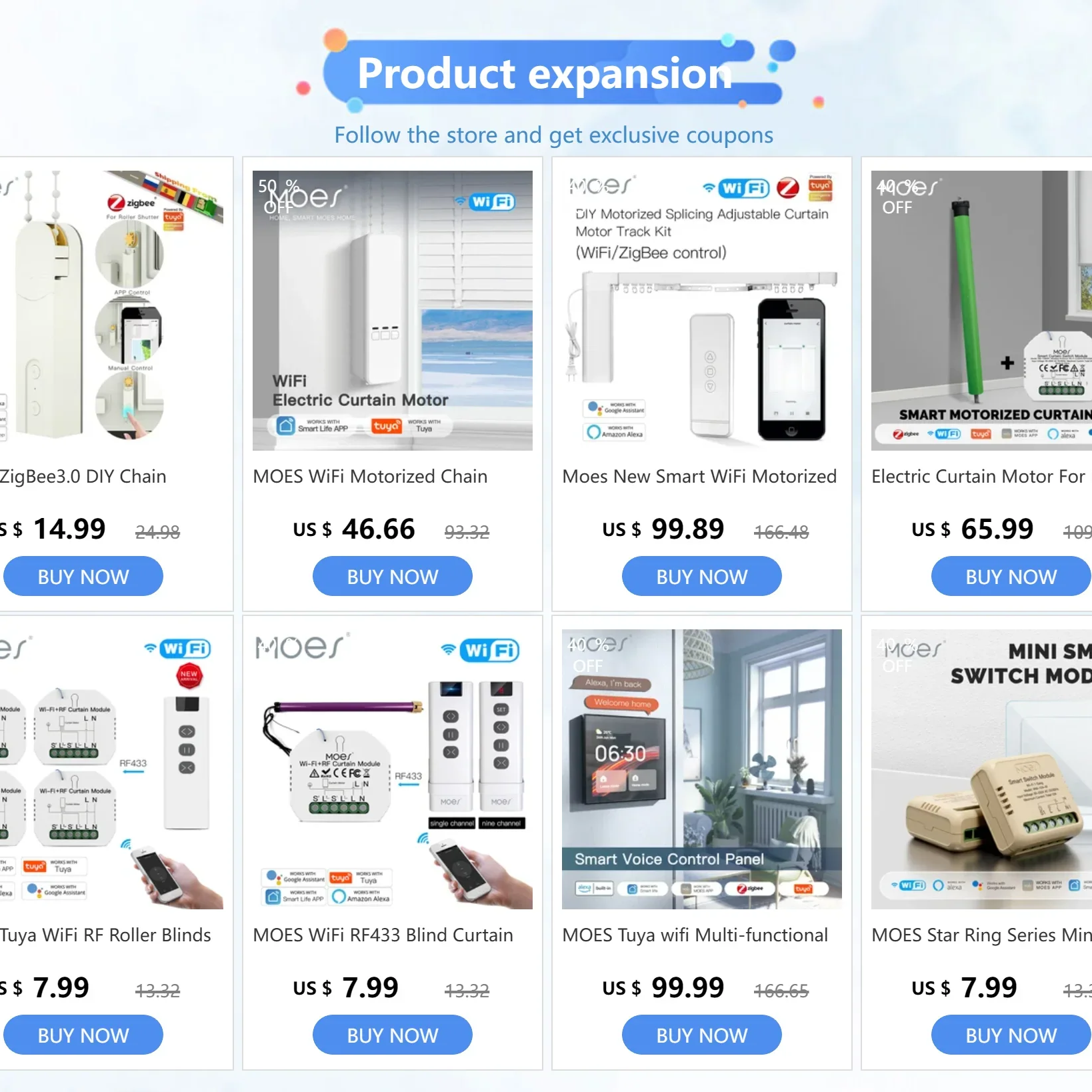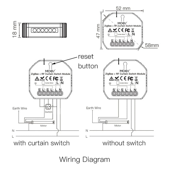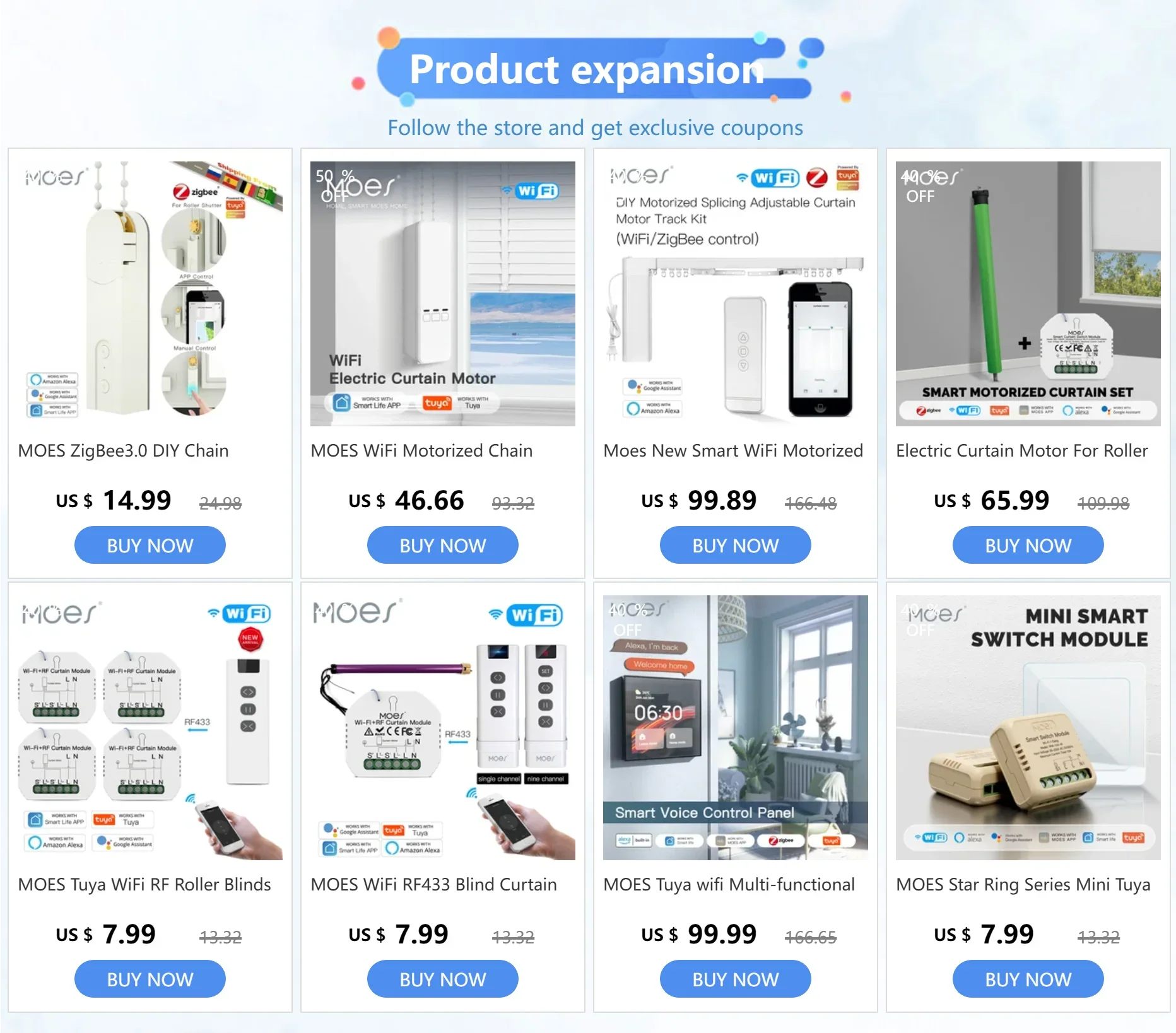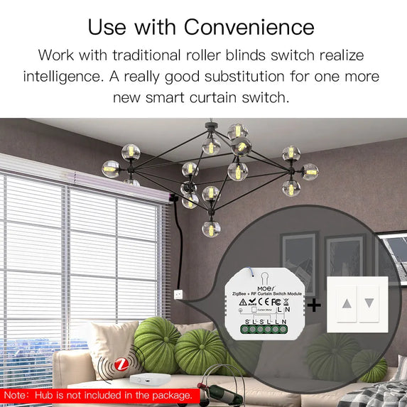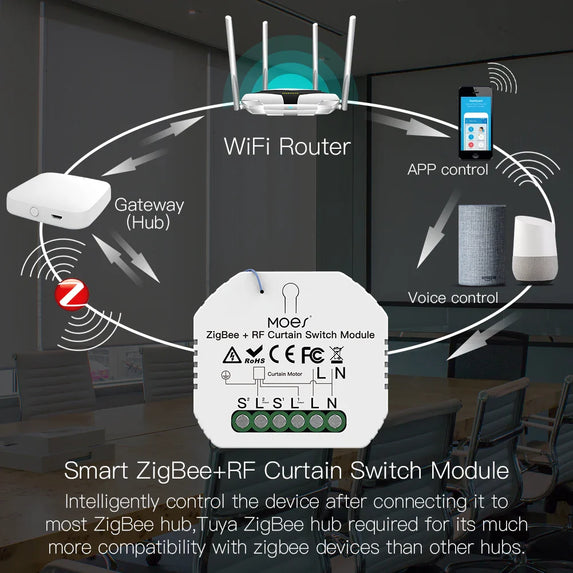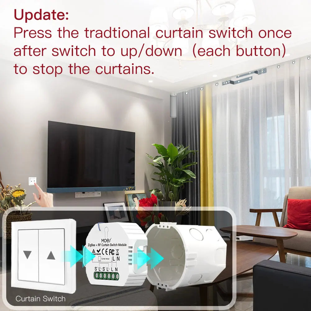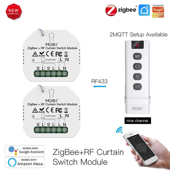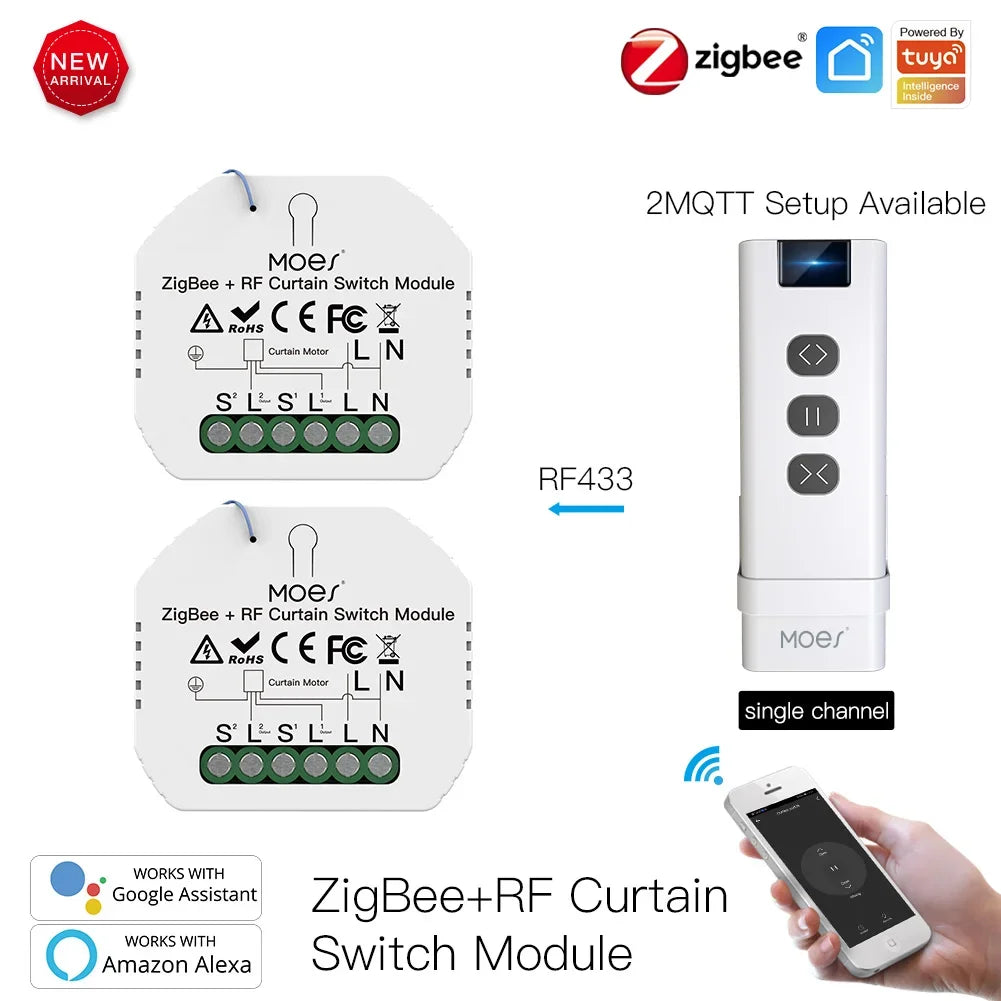 MoesHouse DIY ZigBee Smart RF433 Curtain Switch Module for Motorized Roller Blinds Motor 2MQTT Smart Life APP Alexa Google Home