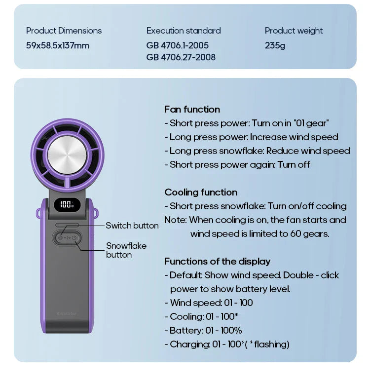 Portable High Speed Cooling Handheld Fan 3600mAh Rechargeable 100 Wind Speeds Adjustable Mini Foldable Air Cooling Turbo Fan