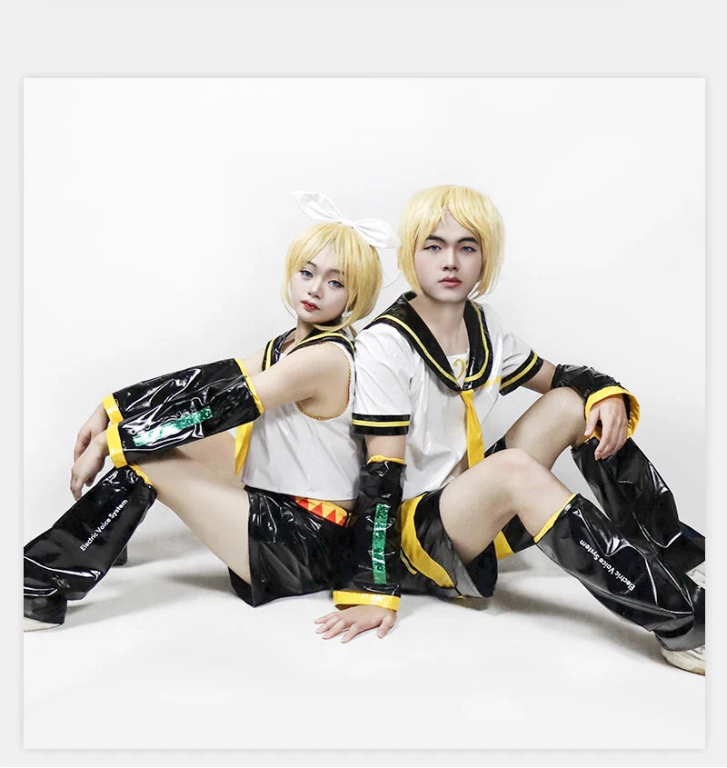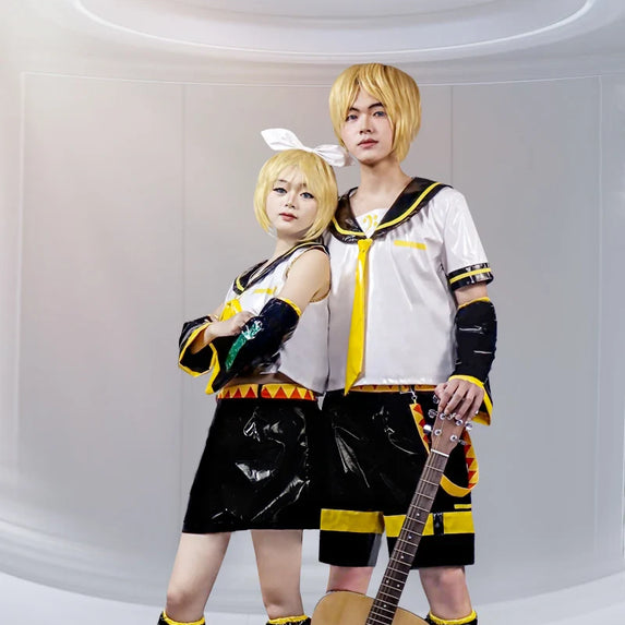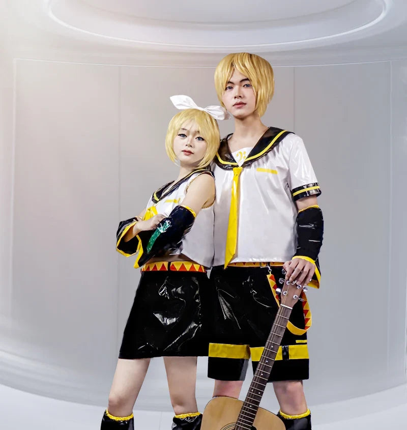 UWOWO Kagaminee Rin/Len Cosplay with Ears Collab Series: Kagaminee Rin Len Cosplay Top Shorts Costumes Cosplay Outfit